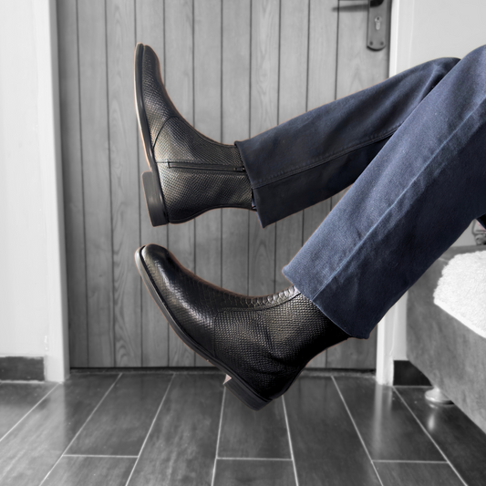 Croco Italian Chelsea Boots with Side Chain (Black)(bl-501)