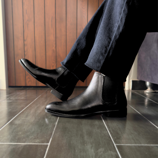 Leather Chelsea Italian Boots (Black)(bl-201)