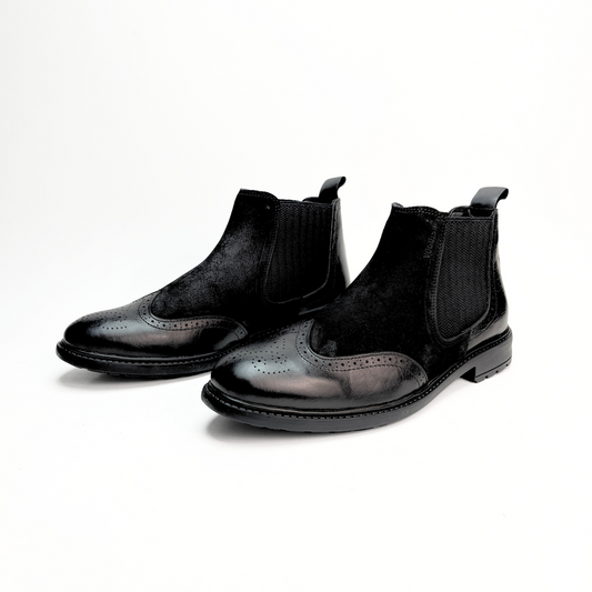 Leather Chelsea Brogue Boots (Black)(bl-200)