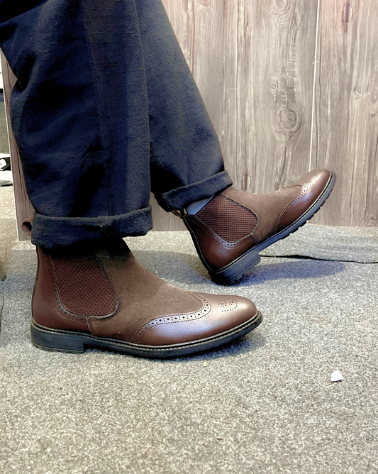Leather Chelsea Brogue Boots (Brown)(br-200)