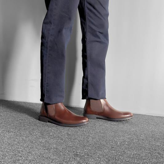 Leather Chelsea Boots Elastic (Brown)(br-14)