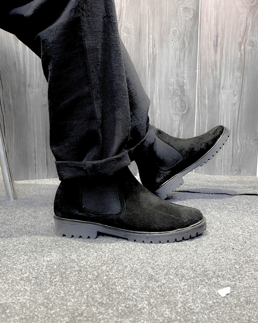 Leather Chelsea Suede Boots (Black)