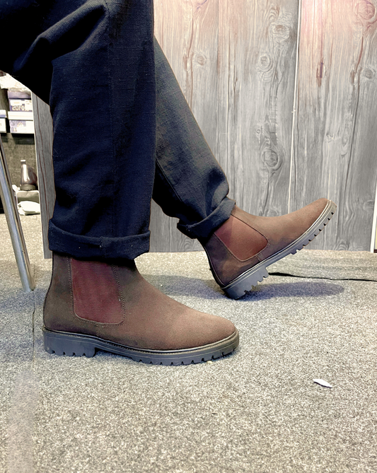Leather Chelsea Suede Boots (Brown)