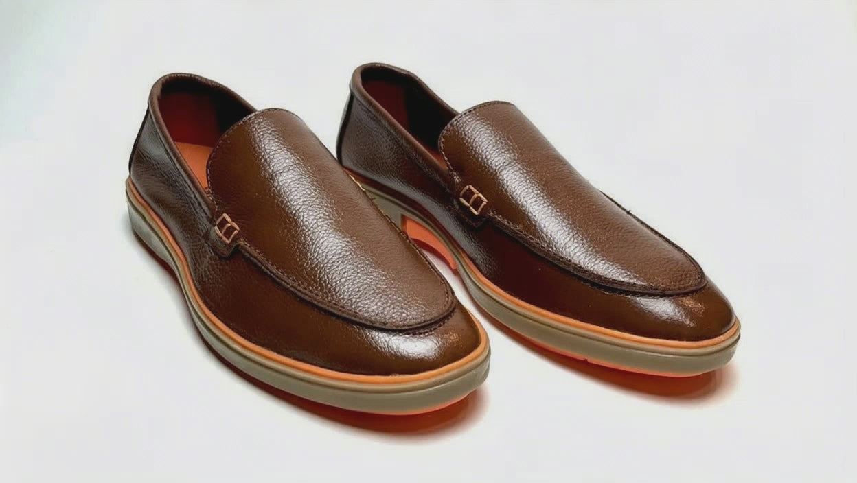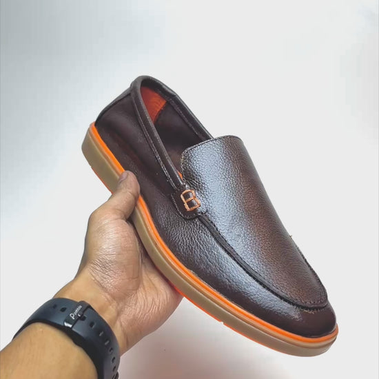 Genuine Leather Loafers for Men with Stylish Orange Sole (Brown)