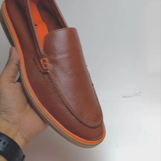 Genuine Leather Loafers for Men with Stylish Orange Sole (Tan)